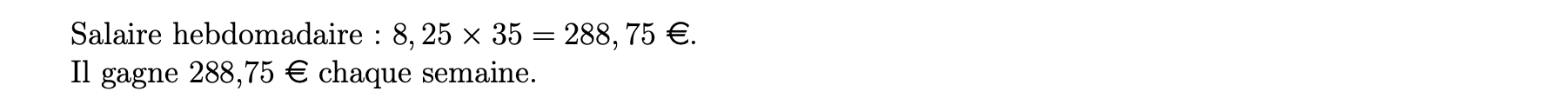 4. \(35\%+20\%=55\%\). \(55\%\times2000 = 1100\). L’alimentation et les transports représentent donc 1100 €.