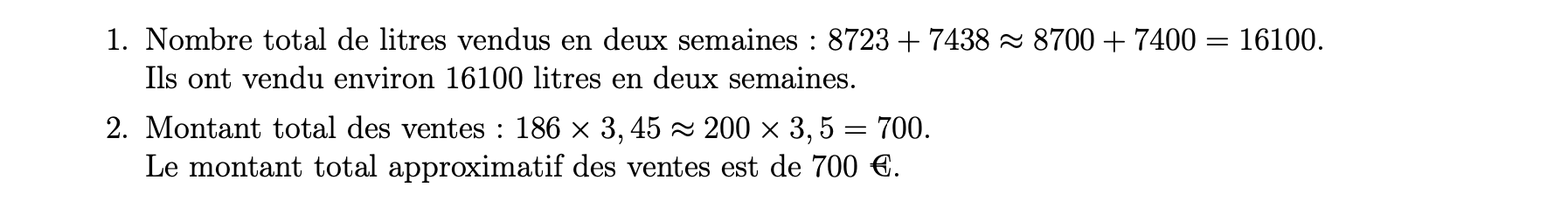 1. Les vêtements représentent 50 % du total, soit la moitié des ventes.