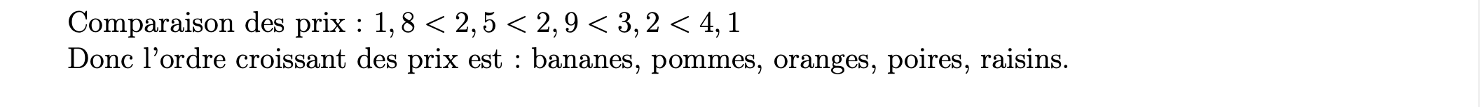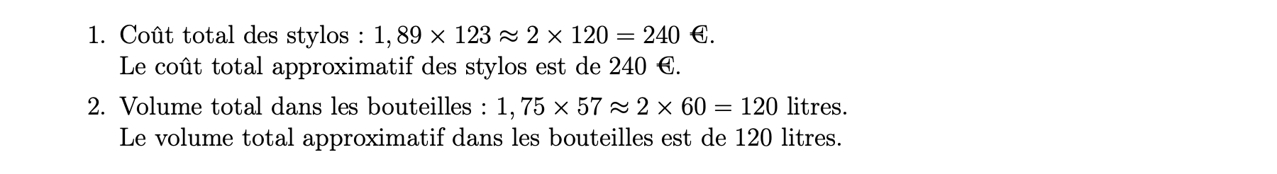 1. L’ordre est : Marche (40 %) > Bus (30 %) > Vélo (20 %) > Voiture (10 %).